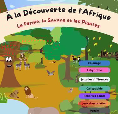 À la Découverte de l'Afrique - La Ferme, la Savane et les Plantes (3-6 ans) | Cahier d'activités - 28 pages