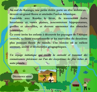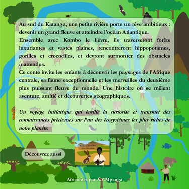 Un conte africain illustré où Kombo le lièvre accompagne une petite rivière dans un voyage extraordinaire jusqu’à devenir le fleuve Congo.